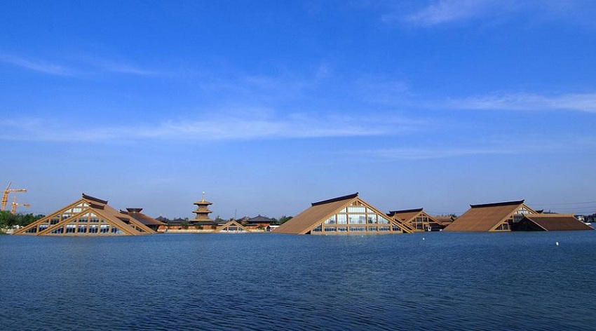 公园内建有20多个各类主题展示馆、纪念馆、陈列馆等,集文化传播和娱乐体验于一体,是古代文明和现代设施的完美结合。其中,最有特色的是遗址博物馆。博物馆建筑群临水而建、主体结构都隐藏在水下,水面上只有屋顶,以此隐喻远古文化的深藏不露和深厚底蕴。